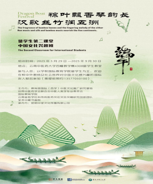 端午临仲夏,时清日复长。当悠悠粽香遇上袅袅丝竹,会碰撞出怎样的奇妙火花?云南中医药大学“留学生第二课堂中国文化兴趣班”重磅来袭,带你解锁中国文化的独特魅力,快来一探究竟!