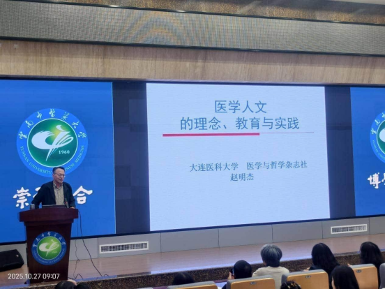 讲座伊始,赵明杰教授直指当前医学界对医学人文精神认知“模糊与空泛”的核心问题,以概念辨析为切入点,系统梳理“医学人文与一般人文”“医学人文精神与医学人文素养”“医学人文与人文医学”等易混淆范畴。他特别强调,医学人文精神并非泛化的人文理念,其核心是“对人的生命与生命权利的敬畏与尊重”,这一观点为中医药领域践行“以人为本”的诊疗理念提供了重要指引——尤其对中医“整体观念”“辨证施治”中蕴含的人文关怀,作出了当代视角的解读。