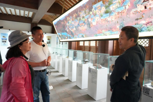 在乌龙村,宋辞与昆明华侨城美丽乡村发展有限公司运营管理部负责人潘永刚副总共同为大家详细介绍了拥有600多年历史的乌龙村(又名卧龙古渔村)。它古称卧龙浦,依七星卧龙山而建,毗邻滇池,是呈贡八景之一“渔浦星灯”的诞生地,又是文化与宗教多元并存的古村落,华光庙、净乐庵、垂恩寺、关帝庙皆坐落于此。这里还有“耕读传家”的优良传统,正所谓“耕读传家久,诗书继世长”。参观中,潘永刚饱含深情地介绍了适合昆明气候的松木榫卯结构建筑、昆明传统“一颗印”建筑、沈从文旧居等宝贵遗产。