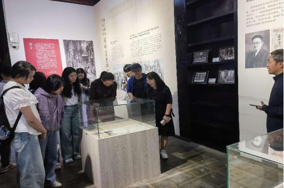 随后,师生们来到了冰心默庐,作为著名文学家冰心抗战时期在呈贡的居住地,充满了文学与艺术的氛围。师生们不仅欣赏了冰心先生的珍贵手稿和著作,通过宋辞的介绍,还了解了冰心先生的人生经历、文学成就以及对社会进步的不懈追求。大家纷纷表示,冰心先生的精神风貌与中医人悬壶济世、救死扶伤的高尚情操相契合,都是时代精神的生动写照。