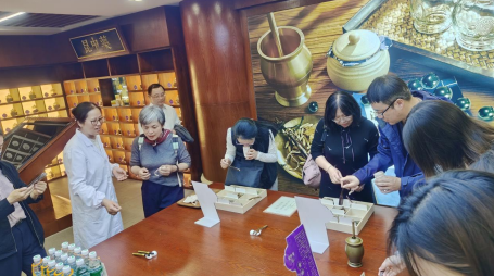最后,在工作人员的带领下,全体师生亲自体验了部分中医药产品的制作过程。