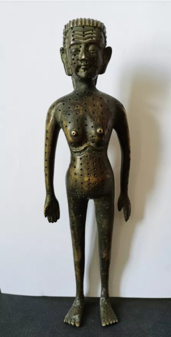苏烈在中国学习中医针灸期间购买的清代晚期仿制雍正针灸铜人,后带回法国作为教具